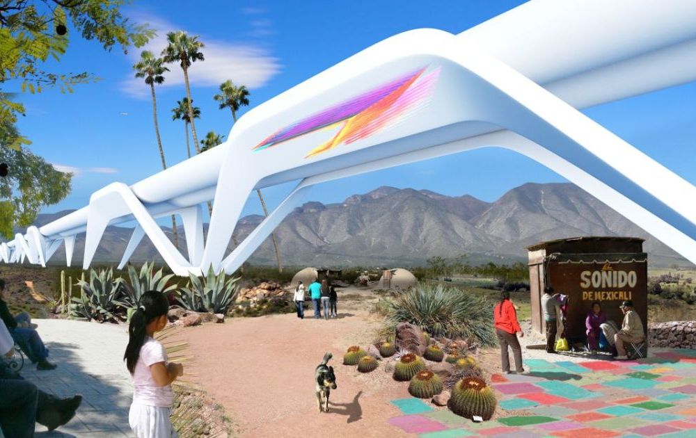 The rendering at the top of this post shows an “idealistic” vision of what a hyper loop could look like and tries to paint a picture of the positive impact it could make.   It does everything right it has people to add a  human scale to it is has a nice picturesque background, it even has animals.  How ever all I see is vast expanse( desert) that in reality would be void of any human activity hence the need for a hyper loop in order to connect the fragmented severely malnourished urban environment.  In fact there is not much that could possibly be more alien and foreign to the human experience than traveling in a dark tube at hundreds of miles an hour.  This used to be the preferred method of transit for bank deposit before we began to go paperless.  I do not know about you but I am not a piece of paper, I want to see things I want to touch and feel the texture of the environment.  I want experience.